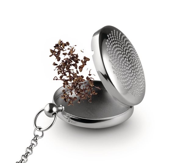 T-TIMEPIECE Preziosa e raffinata, questo filtro da thé in forma sferica costituito da un medaglione attaccato ad un'elegante catenella ricorda una collana o un antico orologio da tasca. Quest'oggetto bijou è stato ideato dal giovane disegner olandese Titus Wybenga nel quadro di un workshop organizzato da Alessi nel 2014. Alberto Alessi, il direttore del marchio che ne porta il nome, racconta: "Mi ha colpito il livello di artigiani di questo progetto. L'obiettivo era di ideare un oggetto di uso quotidiano che avesse la qualità di un bijoux. L'orologio da tasca, un oggetto prezioso classico, ritrova così una nuova vita contemporanea in quanto sfera da thé. L'obiettivo principale di un orologio è di segnare il tempo, mentre la sua nuova forma e funzione è di fermare il tempo, creando un momento di tranquillità e di riflessione. Sarebbe bene che le persone cominciassero a portarlo con sé, come un accessorio personale". Must-have per tutti i tea addict, questo filtro da thé in acciaio inox 18/10 permette una diffusione ottimale degli aromi, si toglie facilmente dalla teiera o dalla tazza grazie alla sua lunga catenella in acciaio.