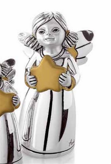 Statuina angelo Energia della collezione Il Giardino degli §Angeli Ardé. Resina ricoperta in bilaminato d'argento.