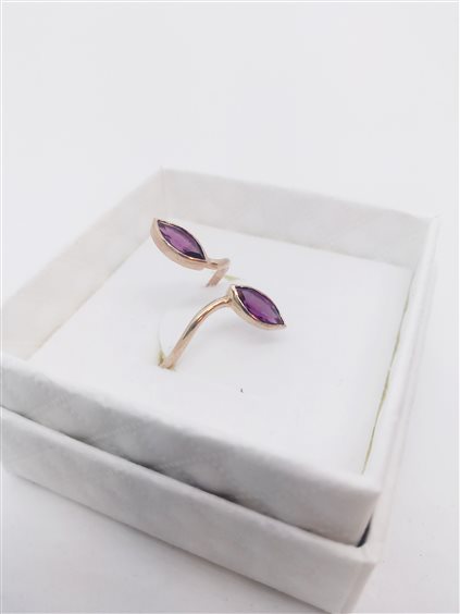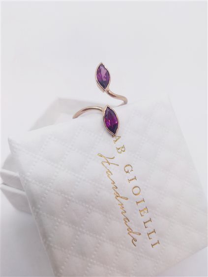 AB GIOIELLI handmade in Lecce Italy Anello contrarier in argento 925 placcato oro rosa 24kt con due pietre di ametrina taglio navetta (0,9mm), color viola intenso. Misura 14 regolabile Gioiello anallergico nickelfree