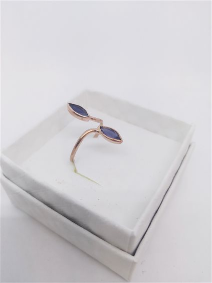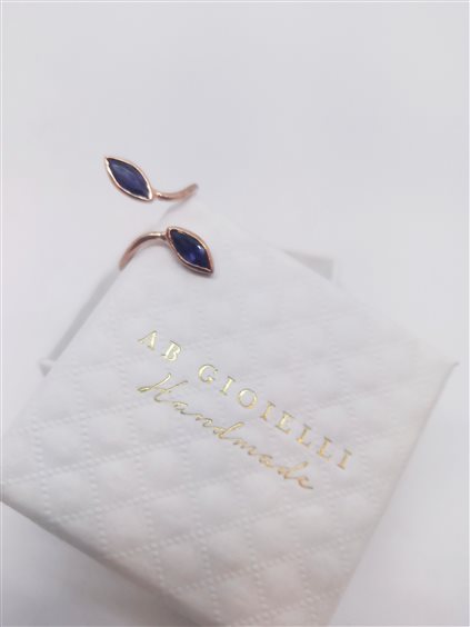 AB GIOIELLI handmade in Lecce Italy Anello contrarier in argento 925 placcato oro rosa 24kt con due pietre di topazio London taglio navetta (0,9mm), color blu intenso. Misura 14 regolabile Gioiello anallergico nickelfree