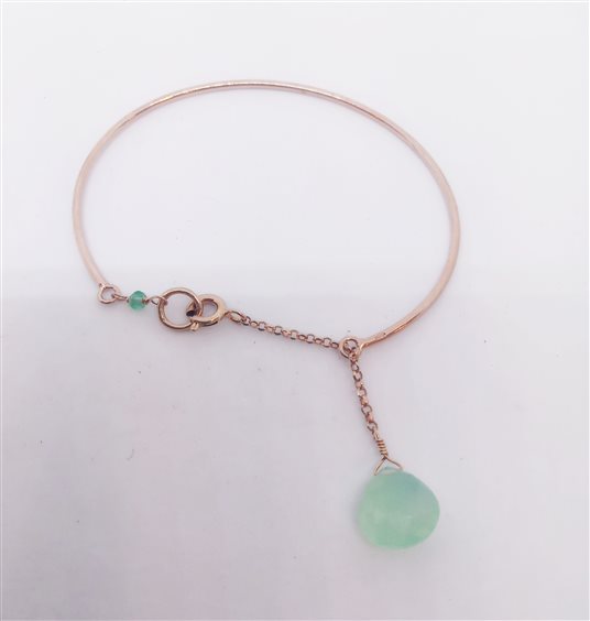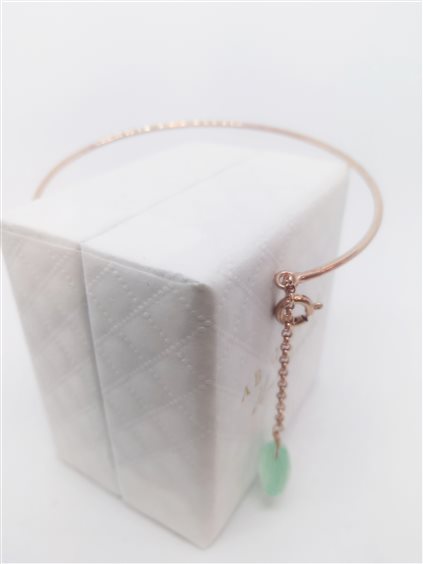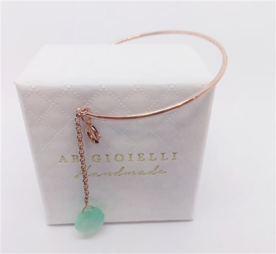 AB GIOIELLI Handmade in Lecce Italy Bracciale rigido in argento 925 placcato oro rosa 24kt con pendente in calcedonio verde a goccia montato su catena rolò diamantata. Chiusura con anellino a molla. Gioiello anallergico nikelfree