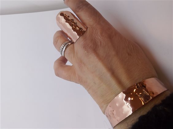 MORGANA GIOIELLI IN ARGENTO Bracciale schiava rigido in argento 925 placcato oro rosa 24kt. Lastra lucida battuta. Disponibile anche anello fascione coordinato. Gioiello anallergico, nichel free.