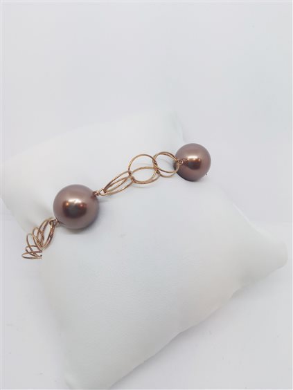TU!DONNA Bracciale in argento 925 placcato oro rosa 24 kt, maglia ovale con perle color marrone sintetiche diametro 14 e una boule sfaccettata in onice. Misura 20, il tipo di chiusura si adatta ad essere inserito anche nelle maglie per diminuire la lunghezza. Gioiello anallergico, nichel free. Disponibile anche in argento rodiato con perle nere