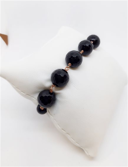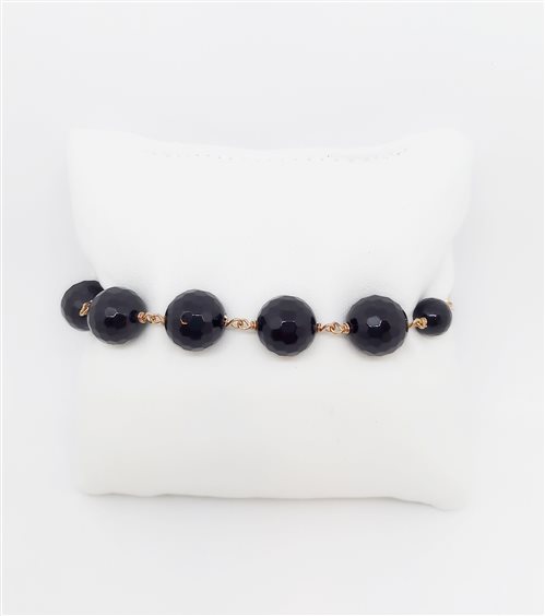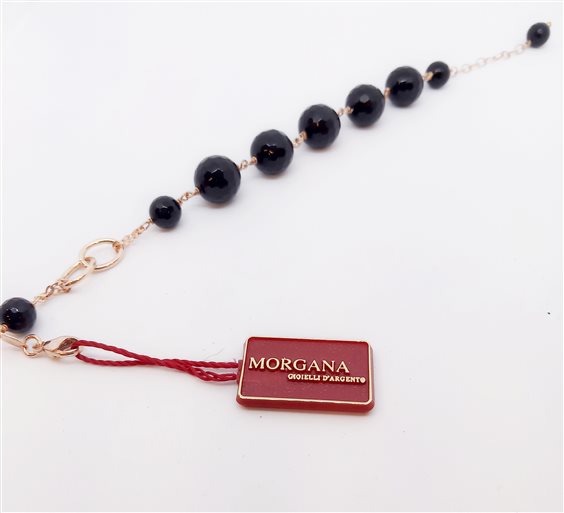 MORGANA ARGENTO Bracciale in argento 925 placcato oro rosé 24kt con boules sfaccettate in quarzo color nero. Chiusura con moschettone. Gioiello anallergico, nichel free.
