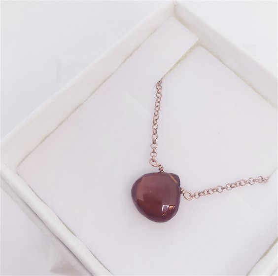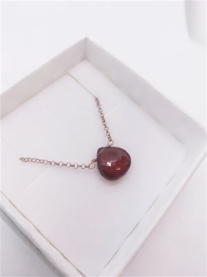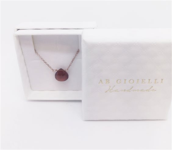 AB GIOIELLI Handmade in Lecce Italy Girocollo in argento 925 placcato oro rosa 24kt con pendente in granato a goccia montato su catena rolò diamantata. Chiusura con anellino a molla e prolunga a catena 3 cm. Gioiello anallergico nikelfree