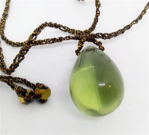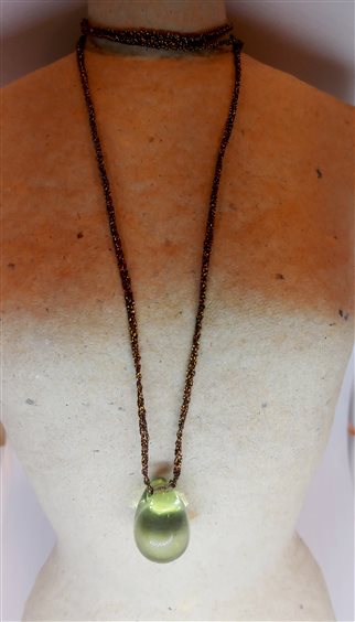 MB GIOIELLI FIRENZE Gioielli artigianali disegnati e realizzati interamente a mano da Marcella Bardi Collana gocce Murano verde tenue Collana lunga in filo di seta giapponese kimono intrecciato con goccia di lampadario antico in vetro soffiato di Murano color verde tenue, finali cubetti in ematite dorata. Chiusura a nodo.