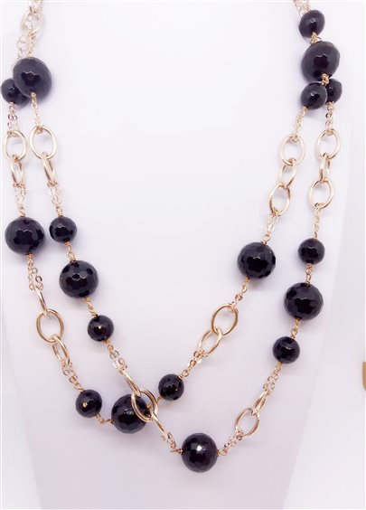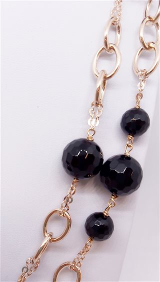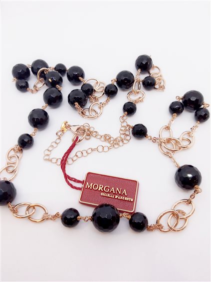 MORGANA GIOIELLI IN ARGENTO Collana lunga in argento 925 placcato oro rosa24 t con boules sfaccettate in agata nera. Gioiello anallergico, nichel free.