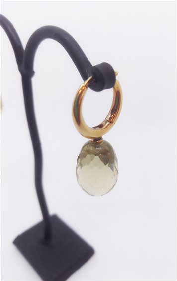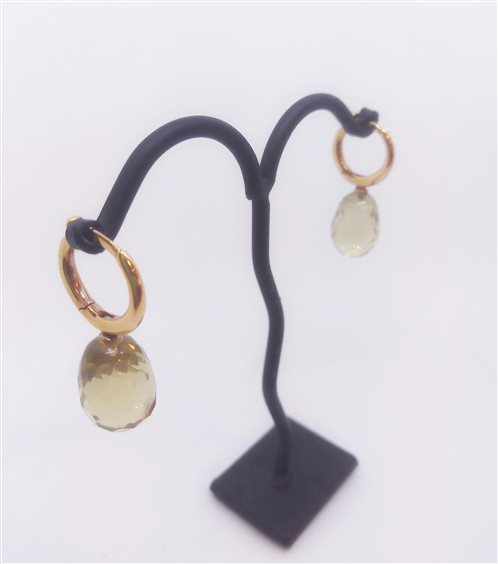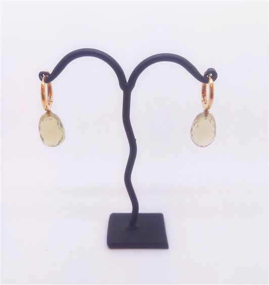 RZ UNICOLOR PEZZI UNICI A PREZZI UNICI (ultimi pezzi di collezioni esaurite) Orecchini in oro rosa 24 carati con goccia sfaccettata in quarzo verde pallido, dimensioni 1.2 cm. Chiusura a scattino. Raffinata lavorazione orafa artigianale.