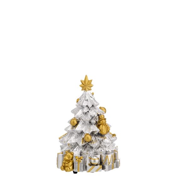 Carillon albero di natale con decorazioni, color oro e argento realizzato in resina argentata Melodia We wish you a merry Christmas