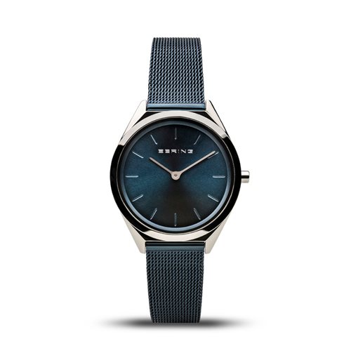 Orologio solo tempo da donna della collezione ULTRA SLIM con cassa in acciaio del diametro di 31 mm. Quadrante blu, cinturino in acciaio maglia Milano blu. Movimento al quarzo, resistente all'acqua 3 atmosfere.