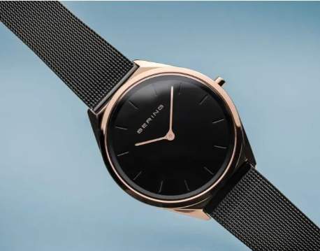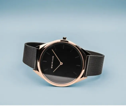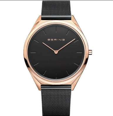 Bering Ultraslim cassa 39 mm Orologio solo tempo con movimento al quarzo, cassa 39 mm in acciaio pvd rose gold e cinturino in acciaio pvd black