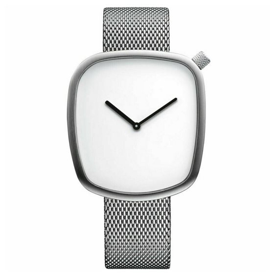 BERING PEBBLE designed by KIBISI L'orologio, creato da uno dei più influenti gruppi di designers scandinavi, è ispirato alla forma smussata dei ciottoli che si trovano lungo le spiagge della costa scandinava. Design minimalista, moderno ed elegante abbinato alla qualità Bering: acciaio inossidabile spazzolato, vetro zaffiro antigraffio. bracciale in maglia Milano coordinato con la cassa. Collezione: Classic Categoria: Orologio Sesso: unisex Vetro: Piatto vetro zaffiro Meccanismo: Quarzo Colore cassa: argento spazzolato Altezza cassa: 6 mm Larghezza cassa: 40 mm Materiale cassa: Acciaio inox Materiale braccialetto: Milanaise Colore braccialetto: argentato Larghezza braccialetto: 18 mm Fibbia: Chiusura a scatto Colore quadrante: bianco Impermeabilità: 3 ATM