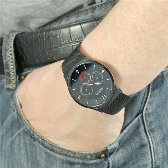 Orologio in acciaio black, diametro mm.40, movimento multifunzione al quarzo, vetro zaffiro. Bracciale in maglia Milano, regolabile. Impermeabile 5 atm., garanzia tre anni.