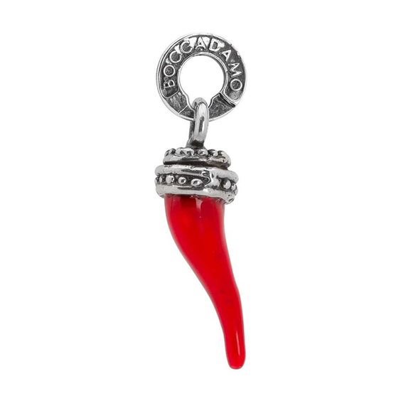 CHARM CORNETTO PORTAFORTUNA ARGENTO ANTICATO E SMALTO cm 3 Charms in argento e smalti della linea Bottega Boccadamo da inserire sulle catene, i portachiavi o le basi per bracciale componibile della linea disponibili in 4 diverse tipologie.