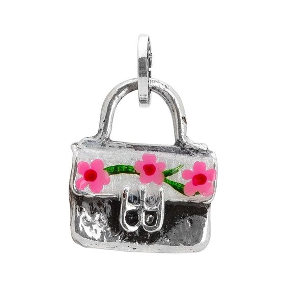 CHARM BORSETTA ARGENTO ANTICATO E SMALTO cm 1,8 x 1,5 Charms in argento e smalti della linea Bottega Boccadamo da inserire sulle catene, i portachiavi o le basi per bracciale componibile della linea disponibili in 4 diverse tipologie.