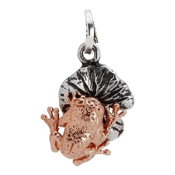 CHARM RANA FOGLIA ARGENTO ANTICATO E PLACCATURA ORO ROSE' Charms in argento e smalti della linea Bottega Boccadamo da inserire sulle catene, i portachiavi o le basi per bracciale componibile della linea disponibili in 4 diverse tipologie.