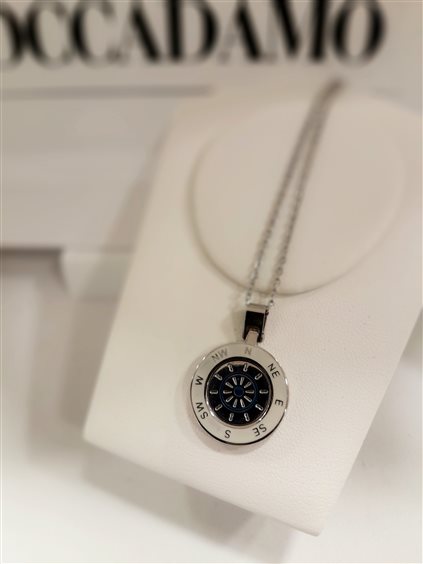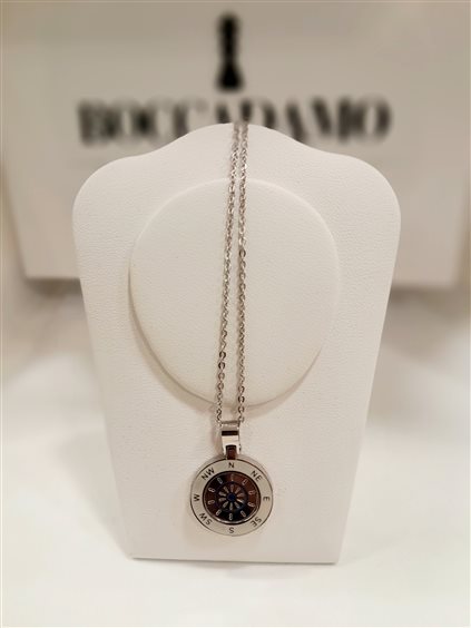 Boccadamo Man Girocollo in acciaio, pendente rosa dei venti. Catena maglia forzatina, chiusura con moschettone.