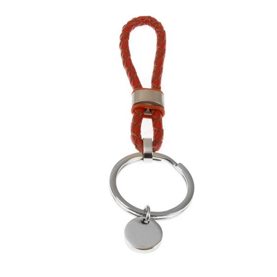 BOCCADAMO MAN Portachiavi in acciaio e cuoio rosso intrecciato con anello brisé