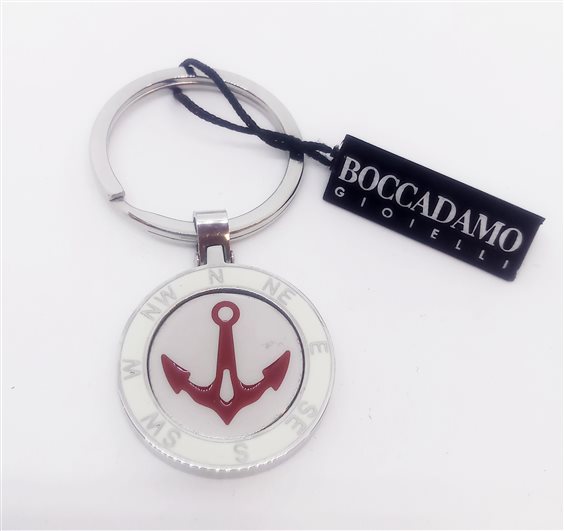 BOCCADAMO MAN Portachiavi in acciaio con anello brisé, rosa rosa dei venti e ancora in smalto rosso