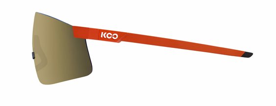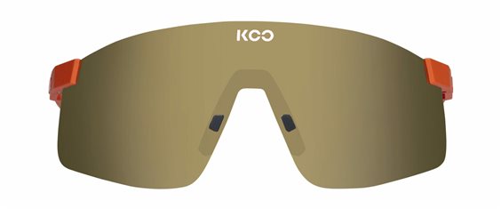 KCO OCCHIALI TECNICI PER BICI SU E FUORI STRADA Sunset Matt / Gold Lenses Gold Mirror Categoria filtro - 3 VLT - 16% // Ultraleggero con soli 21 grammi di peso // Lente singola aerodinamica, senza montatura // Lente torica Zeiss® in nylon // Infrangibile, antiriflesso e con protezione raggi UV al 100% // Aste flessibili e aderenti per una stabilità massima durante la corsa // Campo visivo superiore // Rivestimento a specchio multistrato uniforme // Tecnologia idrofobica antigoccia // Nasello intercambiabile // Nasello Asian incluso nella confezione