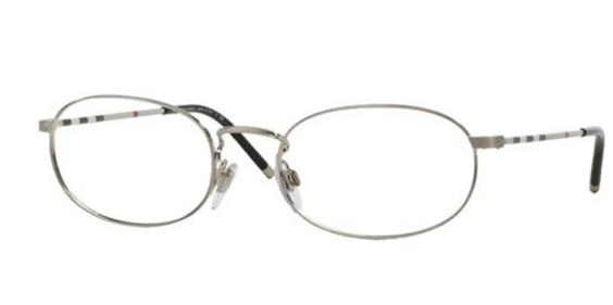 Burberry Montatura fuori produzione in metallo argento satinato con asta stampata motivo Burberry