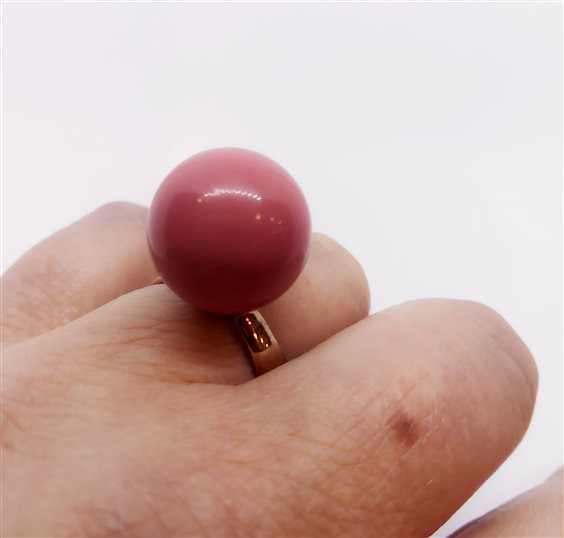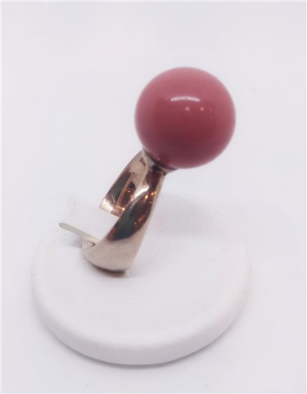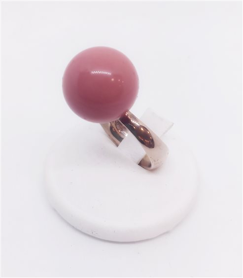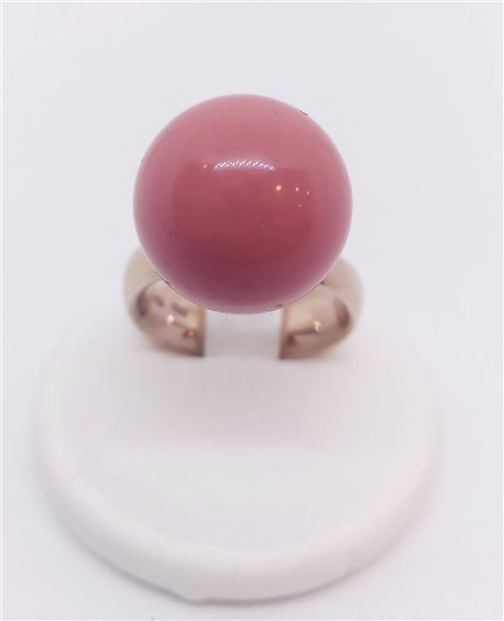 DIADEMA Anello in argento 925 con galvanica oro rosa e con boule in corallo. Gambo bombato. Misura 15 Gioiello anallergico, nichel free Made in Italy