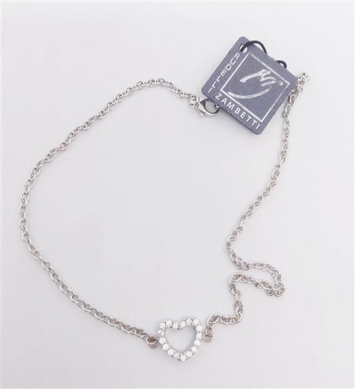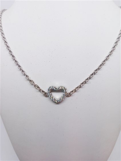DIADEMA GIOIELLI Collana Choker con cuore in zirconi 1x1 cm. Argento 925 rodiato. Chiusura con moschettone, prolunga 6 cm. Catena maglia rolò. Gioiello anallergico, nichel free.