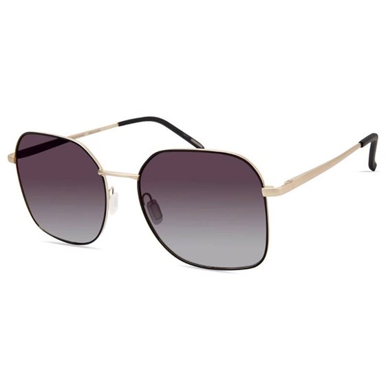 ECO EYEWEAR CANCUN Le montaure Eco Recycled sono fatte al 95% con materiale riciclato e per ogni montatura venduta viene piantato un albero. Montatura forma quadrata oversize in metallo nero lucido con ponte e aste in oro pallido satinato con asta flessibile e lenti polarizzate con protezione UVA e UVB 100%