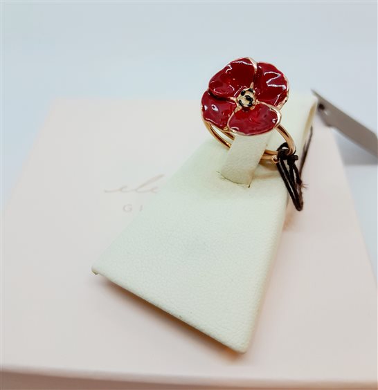 ELECICALE GIOIELLI Anello papavero, collezione Emily Dickinson. Argento 925 in bagno oro rosa 24 kt con smalto rosso. Anello aperto, misura regolabile. Gioiello anallergico, nichel free.