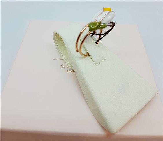 ELECICALE GIOIELLI Anello Bucaneve, collezione Emily Dickinson. Argento 925 in bagno oro rosa 24 kt e smalti. Lavorazione artigianale, design originale made in Marche. Anello aperto, misura regolabile.Gioiello anallergico, nichel free.