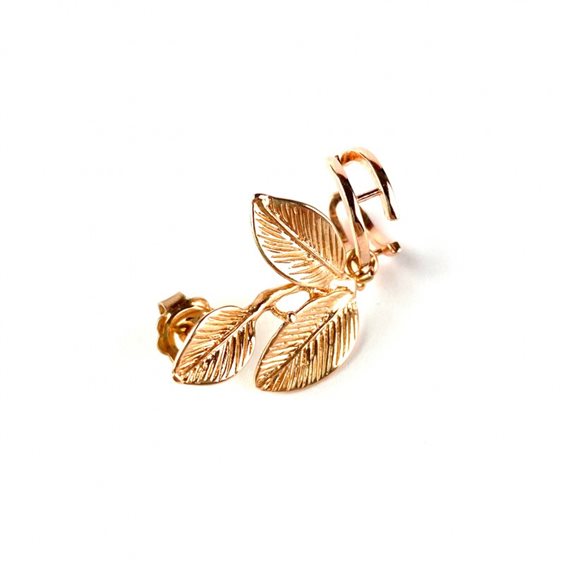 ELECICALE GIOIELLI Ear cuff ULIVO della collezione Emily Dickinson ispirata al giardino di fiori e parole della famosa poetessa. Il gioiello riproduce con sapienza orafa le foglie d'ulivo in argento 925 in bagno oro giallo 18 kt. L'orecchino va inserito nel foro del lobo con chiusura a farfallina (lunghezza della parte con foglie 2 cm) e assicurato al padiglioe tramite l'apposito cerchietto regolabile (vd foto indossato). I laboratori artigianali di Elecicale Gioielli nascono a Morro d'Alba, nel cuore delle Marche, dall'innata passione per i gioielli e le pietre dure che da sempre accompagnano la fondatrice dell'azienda Giulia Orsi, la quale, dopo diversi anni di formazione professionale nel settore, ha deciso di creare una propria linea di gioielleria artigianale in argento sterling 925, tutta made in Italy.