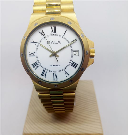 Orologio vintage Gala Swiss made, laminto oro giallo, al quarzo con datario. Presenta i naturali segni del tempo dovuti alla giacenza.