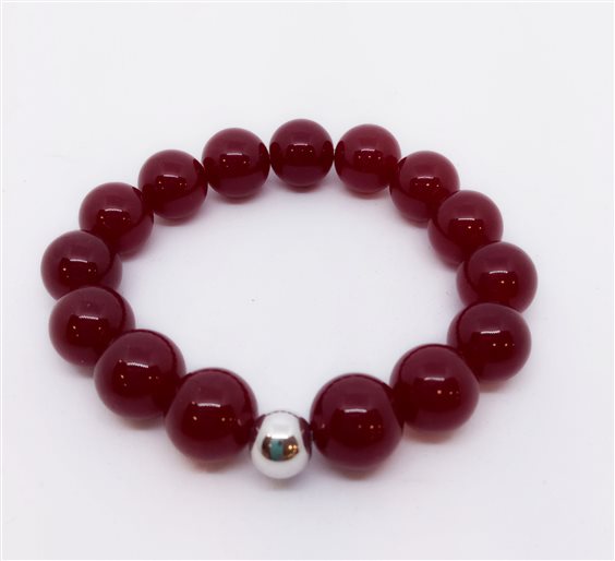 Bracciale elastico in pietre naturali GIADAN Boules in quarzo color bordeaux diametro 12 con boule centrale in argento rodiato.