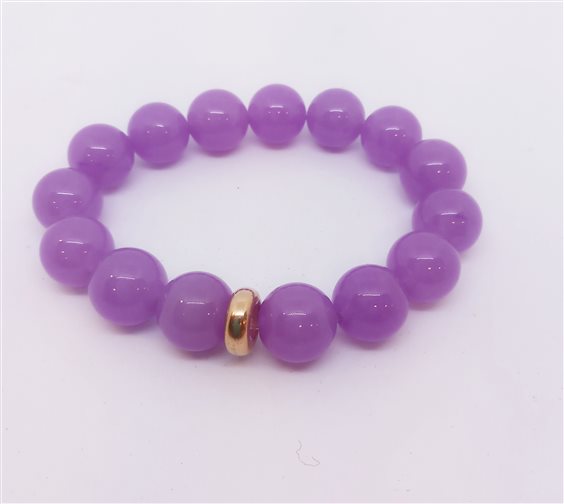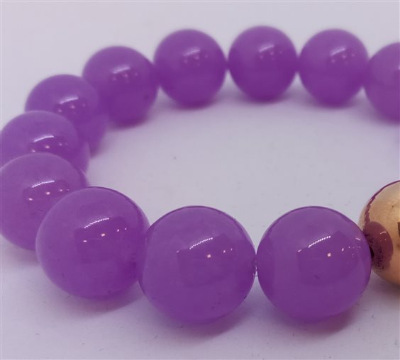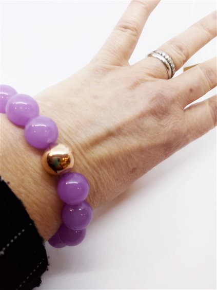Bracciale elastico in pietre naturali GIADAN Boules in agata color rosa-viola chiaro con dischetto centrale in argento 925 placcato oro rosa 24 kt