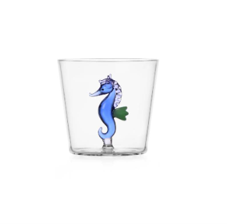 Marine Garden design Alessandra Baldereschi Tumbler Cavalluccio marino blu Vetro borosilicato lavorato a mano e modellato al lume Lavabile in lavastoviglie a basse temperature