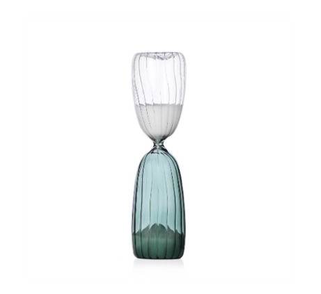Times design Denis Guidone Clessidra in vetro borosilicato lavorato al lume trasparente/verde scuro, sabbia bianca 15'