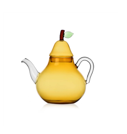 Fruits and flowers design Alessandra Baldereschi Teiera pera, Teapot pear Teiera in vetro borosilicato lavorato a mano al lume ambra e trasparente