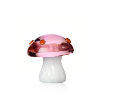 Alice, design Alessandra Baldereschi Fermacarte/segnaosto fungo rosa puntini rossi vetro borosilicato modellato a mano e lavorato al lume h 6,5cm