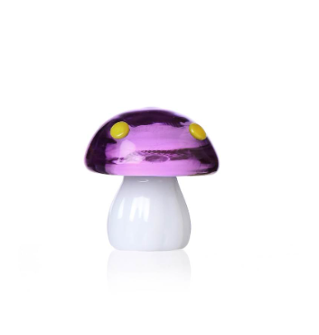 Alice, design Alessandra Baldereschi Fermacarte/segnaposto in vetro borosilicato modellato a mano e lavorato al lume lilla/ambra h.6,5cm
