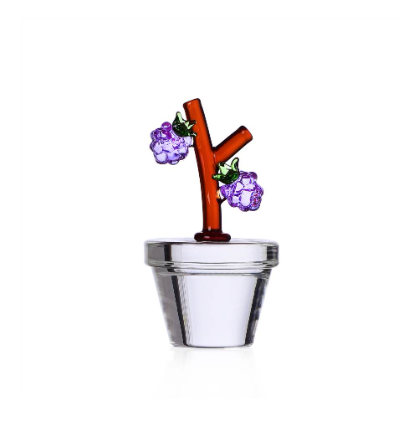 Fruits and Flowers design Alessandra Baldereschi Fermacarte/segnaposto more in vetro borosilicato modellato a mano e lavorato al lume h. 10 cm, colore ambra, trasparente, lilla, viola