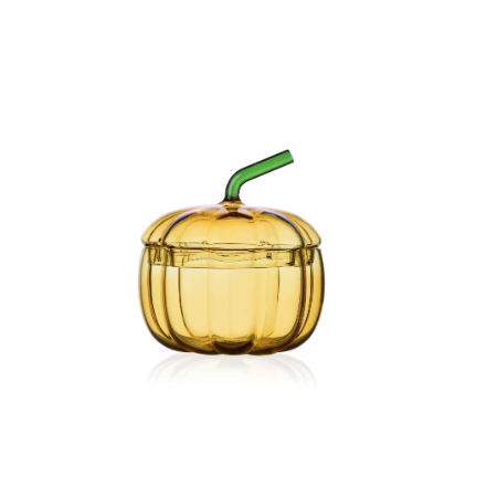 Vegetables, design Alessandra Baldereschi Scatola peperone, Pepper box Vetro borosilicato lavorato a mano e modellato al lume Colore ambra e verde Lavabile in lavastoviglie a basse temperature