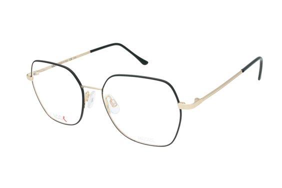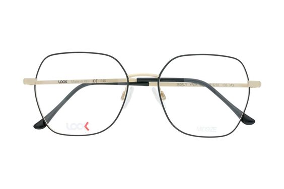 Montatura da donna in acciaio, astine, interno e ponte oro lucido, oculari nero.