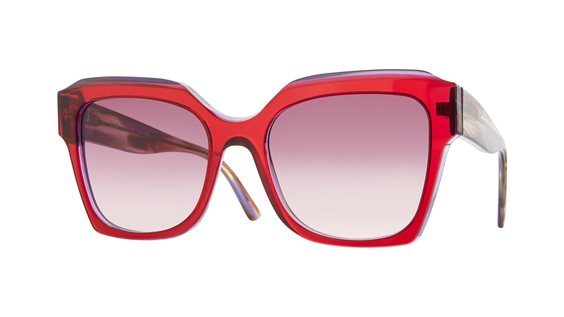 Occhiale da sole donna in lastra di acetato rosso ciliegia trasparente, lente grigio bordeaux degradante cat 2 con trattamento antiriflesso. Gli occhiali Look, "un'alternativa rispetto al sistema" e made in Italia, sono completamente progettati e realizzati a mano in Italia con i migliori materiali e tecnologie sempre all'avanguardia.