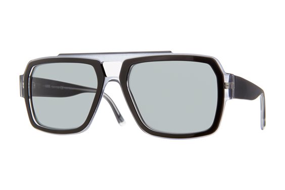 Occhiale da sole uomo in lastra di acetato nero e grigio trasparente, lente grigio uniforme cat 2 con trattamento antiriflesso. Gli occhiali Look, "un'alternativa rispetto al sistema" e made in Italia, sono completamente progettati e realizzati a mano in Italia con i migliori materiali e tecnologie sempre all'avanguardia.