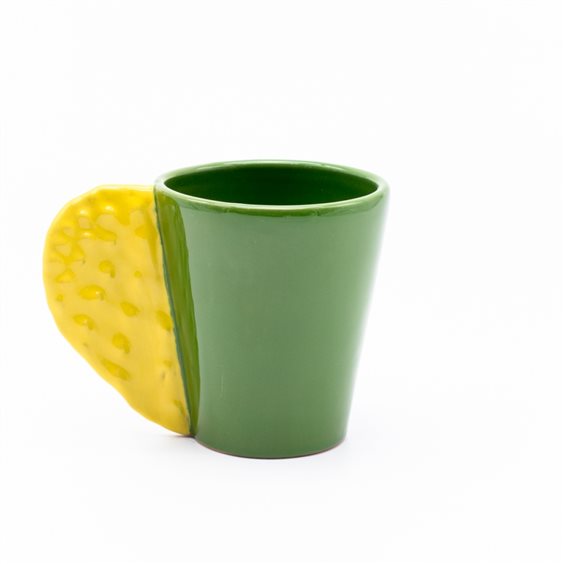 SPINOSA MUG verde/giallo La Mug spinosa è frutto della collaborazione fra Marco Rocco e l'artista Giuseppe Restano. I due designer progettano una tazza minimal e colorata che si ispira alle radici meridionali, rappresentate dalla vivacità dei colori e dalla pala di fico d'india, pianta simbolo delle regioni del sud. Una tazza coloratissima, che mette sempre di buon umore, da tenere come arredamento o da usare tutti i giorni per la tua colazione! Può essere usata in lavastoviglie e microonde. Made in Grottaglie, Puglia, Italia