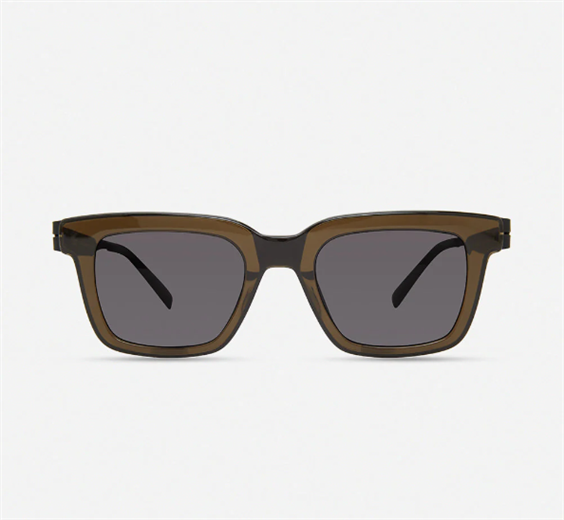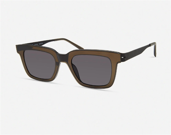 Modo Eyewear Occhiale da sole in acetato con scheletro frontale e aste in titanio. Le montature modo sono ultraleggere, flessibili ed estremamente resistenti a rotture e deformazioni. Lenti da sole polarizzate con trattamento antiriflesso grigio azzurro. Montatura color verde olive, aste nero satinato. L'azienda, produttrice anche del marchio Eco, è all'avanguardia non solo per la qualità e la ricerca in campo tecnologico e materico ma anche per i progetti di sostenibilità come One frame - One tree con cui sono stati piantati 3.3 milioni di alberi e Buy a Frame - Help a child see che ha permesso di aiutare 1.7 milioni di bambini a ricevere diagnosi, cure e supporti visivi.