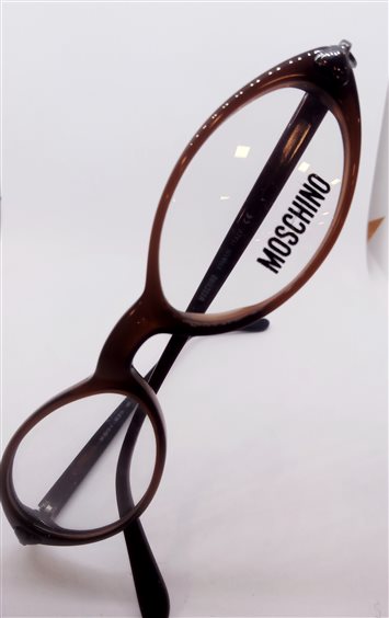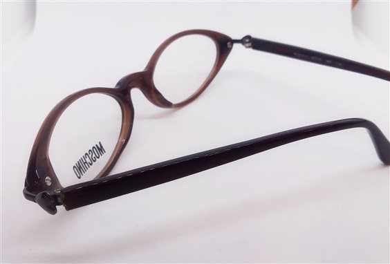 MOSCHINO VINTAGE Montatura in acetato marrone con raccordo asta in metallo a cuoricino brunito. Design originale anni 80/90 Un occhiale iconico per appassionati di stile