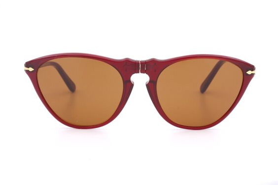 Persol Vintage anni 80 Occhiale da sole bordeaux con dettagli oro giallo. Asta e ponte sistema brevettato Persol meflecto Occhiale nuovo in perfetto stato