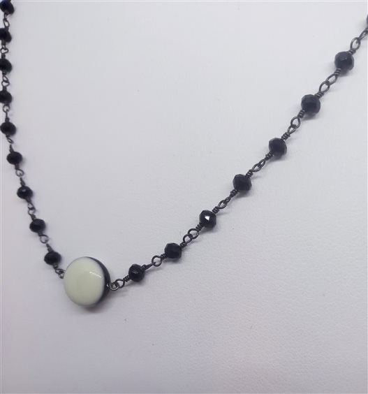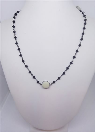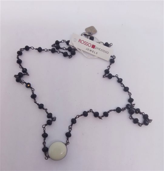 ROSSOprezioso JEWELS Choker UNOPOIS in lega metallica anallergica, colore brunito con grani di pietre naturali sfacettate neri e pastiglietta centrale in legno laccato a mano. Lunghezza 39 cm. Chiusura con anellino a molla. Indosso aderente a collo. La collezione ROSSOprezioso è realizzata a mano con smalti, pietre naturali,legno e placcatura oro rose’ 24kt su base palladio anti allergica o su base argento 925. I gioielli ROSSOprezioso sono pensati per donne che amano il colore e sanno giocarci con ironia ed eleganza. Tutti i gioielli ROSSOprezioso sono materici, ma leggerissimi.