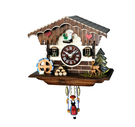 Orologio a cucù mini Foresta nera Movimento al quarzo Cassa in legno intagliata e decorata a mano Pendolo con ragazza tirolese Suoneria a scelta solo all'ora piena, cucù o Westminster